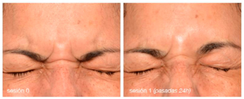A las 24 horas de su aplicación, en el área tratada con c.prof 213 mesotox solution, se observa mayor efecto debido a la aceleración del inicio de acción.